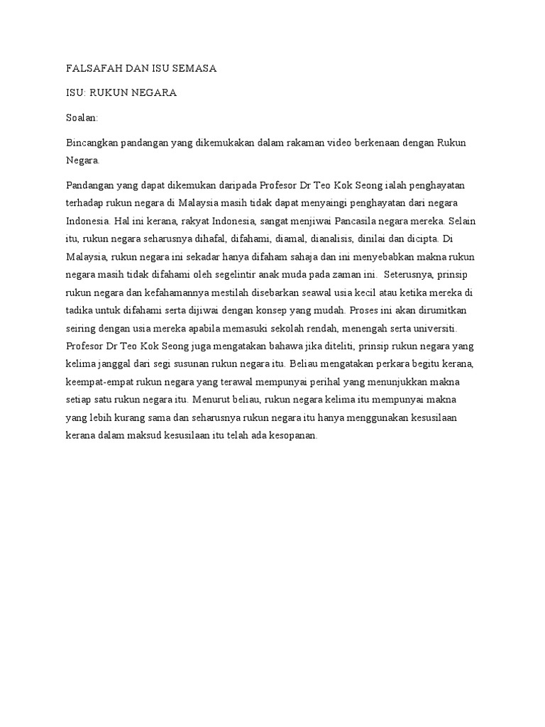 Isu Semasa Dalam Dan Luar Negara from imgv2-2-f.scribdassets.com Sekecil mana pun pandangan itu ia tetap membantu saya dalam melihat sesuatu isu. Menceritakan tentang isu terkini yang berlaku dalam negara, termasuk dalam semua hal. Penggunaan kad kredit mendatangkan kebaikan dan keburukan kepada pengguna? Kom3362 isu komunikasi dan teknologi. Isu semasa dalam sains sukan. Menzahirkan kasih sayang kepada kekasih perlulah ada batasan selaras dengan fitrah manusia. Rakyatnya hidup dalam suasana aman sentosa. Malaysia merupakan sebuah syurga dunia kerana kejadian buruk jarang berlaku di sini terutama ancaman bencana alam dan peperangan.